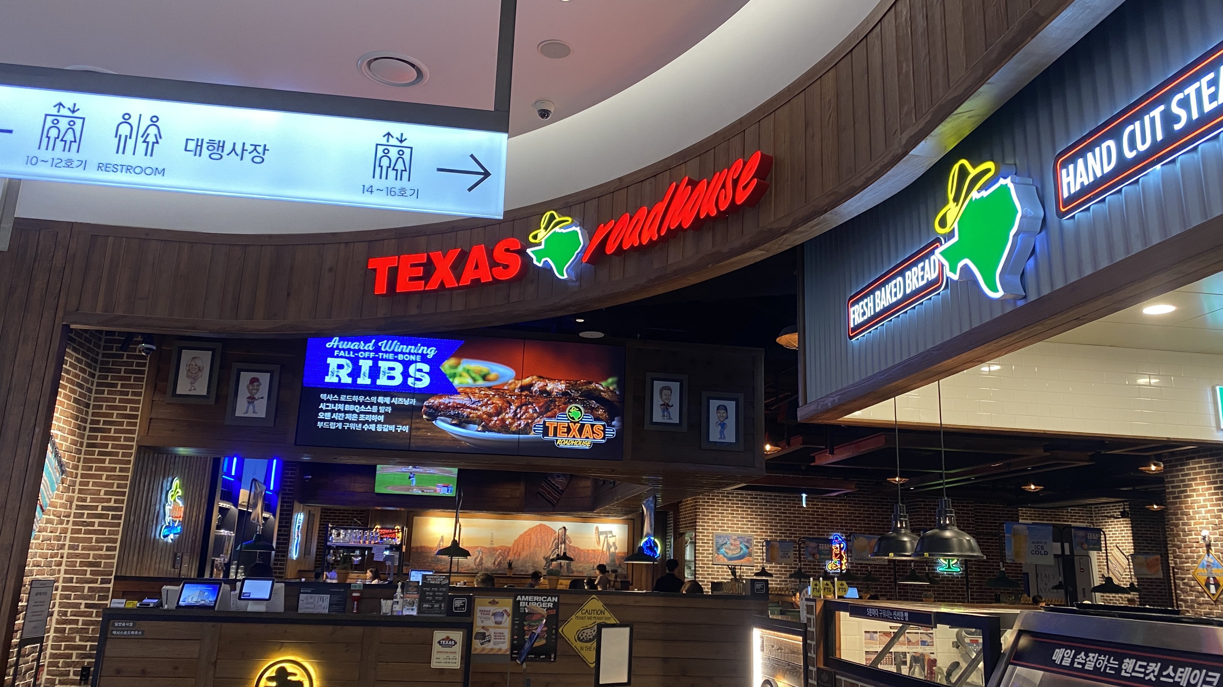 고기 누린내 일도 없다. 누가 한우가 쵝오라고 했나. 한우는 기름지다. 미국 텍사스산 소고기는 담백하다. 기름은 적은데 질기지 않고 텍사스에서 1년 사셨다는 어느지인분의 말씀: 사람보다 소가 많다는 텍사스,흑우는 더 맛나다고 하셨는데 흑우는 미국 가서 먹는 걸로 하자. 오늘은 소개할 맛집은 판교 현대백화점 지하에 위치한 텍사스 로드 하우스이다.