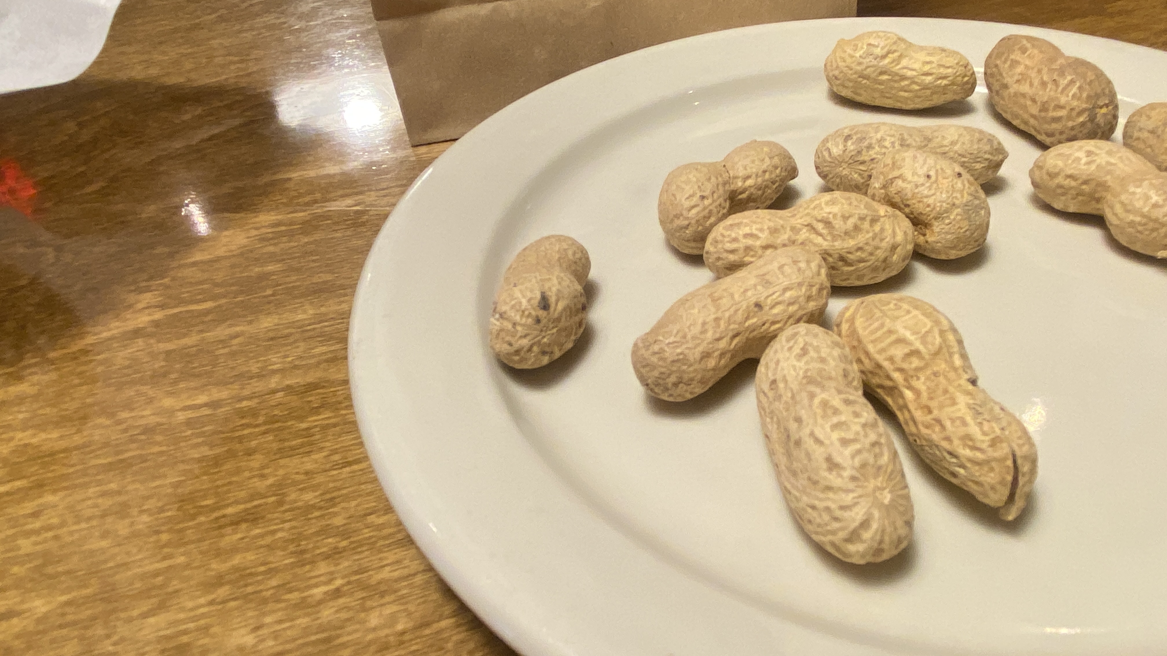 새로 구워낸다는 따땃한 신선한 빵 대령. 이 양도 어마어마하다. 땅콩 까먹는 재미도 쏠쏠할 듯 하지만. 난 집에 가지고 가서 먹기로 했다.