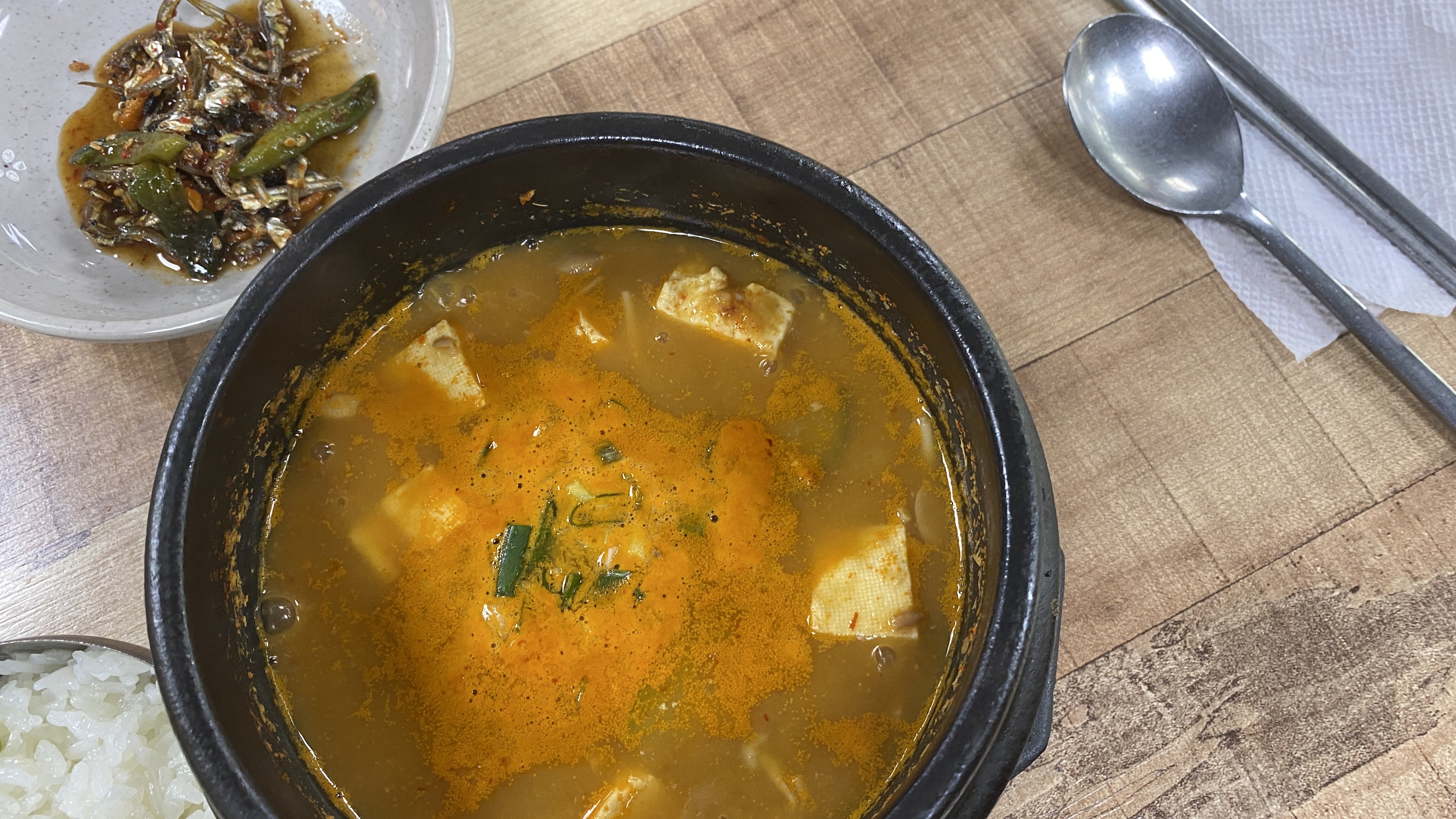 아버지는 순두부 백반을 주문하셨고 저는 청국장을 주문했습니다. 아침 일찍 갔던 시간이라 밥을 막 지어 주시는 듯.. 음식이 나오는데 시간이 조금 걸렸지만 천천히 기다리는 것도 멋이지요. 구수한 청국장은 제 입맛에 짰어요.ㅠㅠ 아버지의 순두부찌개도 한입. 역시나 짭니다. 아버지는 짠 거 잘 모르겠다고 하시는데. 제가 요즘 입맛이 좀 이상한가요? 특별한 맛은 아니고요. 어디든 가면 맛볼 수 있는 특색 없는 찌개였습니다. 이렇게 되면 살짝 두부전골 요리는 어떨 맛일까... 다음 기회에 와서 메인 메뉴를 먹어봐야겠습니다.