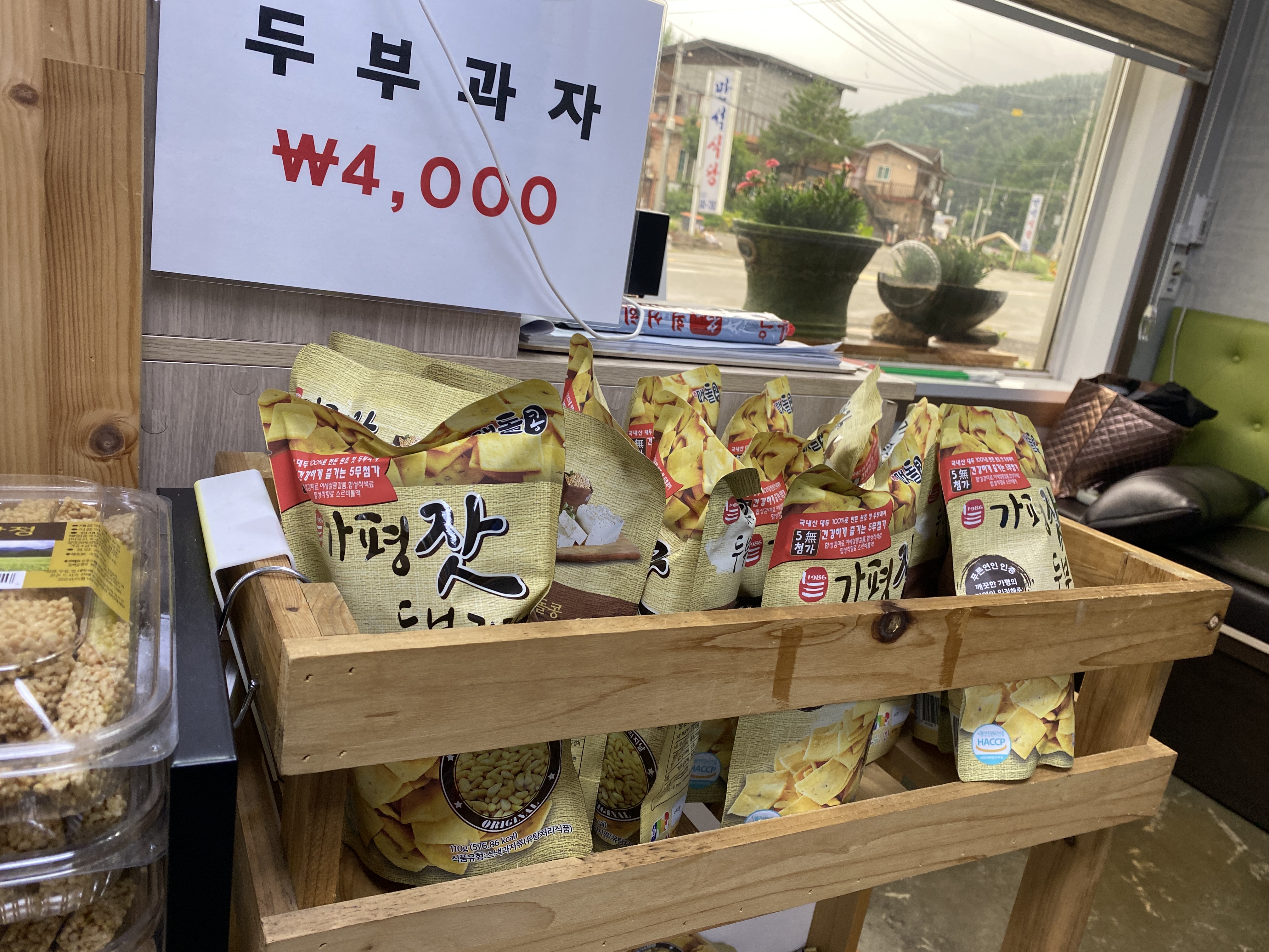 실내는 청결하구요 넓은 주차장 그리고 두부과자도 판해하고 있었어요.
