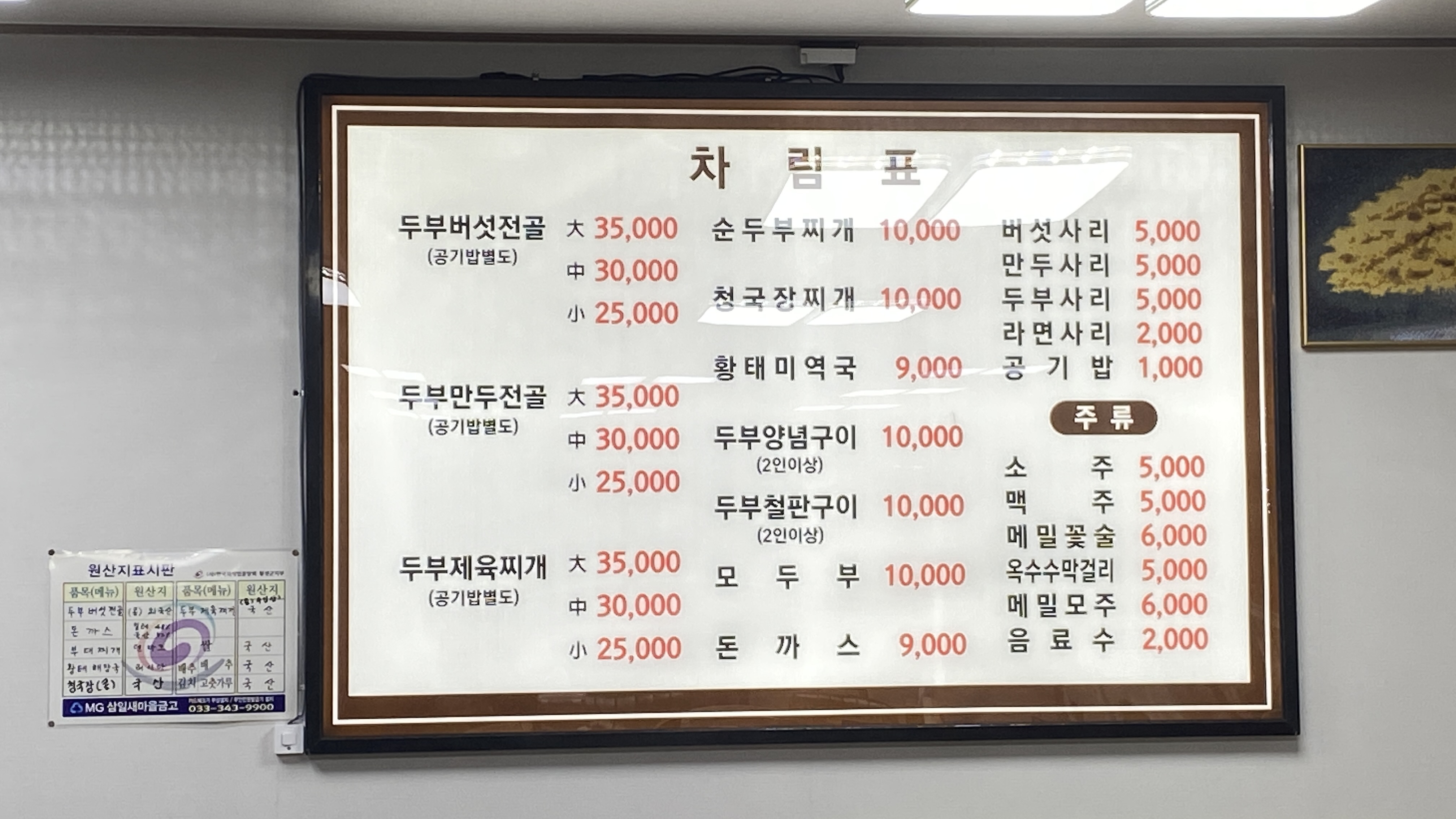 오픈된 주방안도 청결하고 널찍한 공간의 두부사랑 마음에 들었는데.. 아침 일찍 찾아간 우리 모자에게 ' 어찌 이렇게 손님이 일찍 왔지?" 하는 반김은 역시나 무뚝뚝한 강원도 사람들의 특징인 거 같습니다